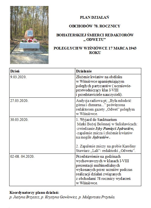 Plan działań obchodów 78. rocznicy śmierci Redaktorów "Odwetu"