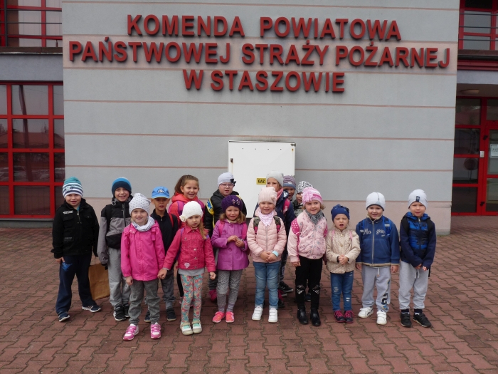 Tuż po spektaklu dzieci miały okazję zwiedzić Komendę PP Straży Pożarnej w Staszowie. Strażacy zaprezentowali dzieciom próbny alarm oraz sprzęt, którego używają w trudnych warunkach. Dzieci wysłuchały opowieści o trudnej, odpowiedzialnej i niebezpiecznej pracy strażaka. Utrwaliły sobie numer telefonu do Straży Pożarnej- 998 i numer alarmowy- 112. Mogły też z bliska oglądać wozy strażackie.