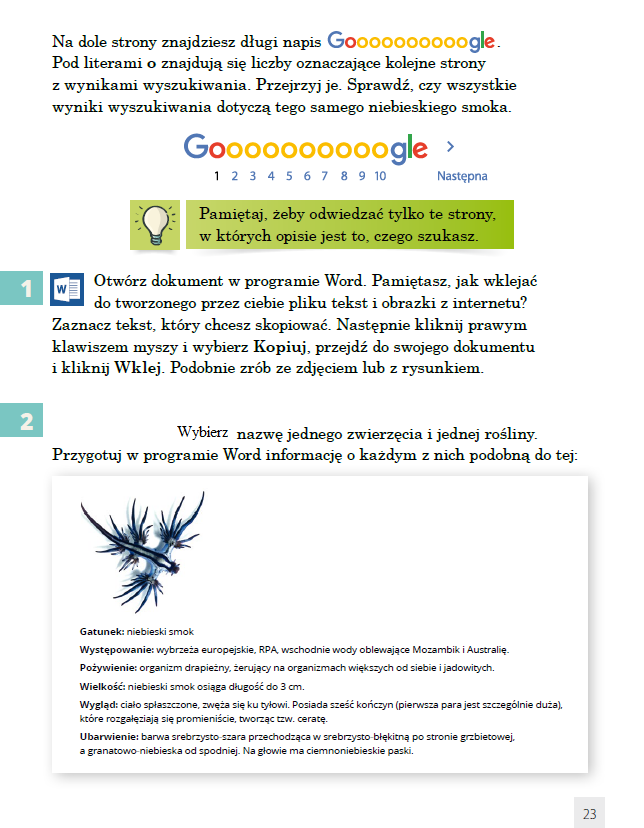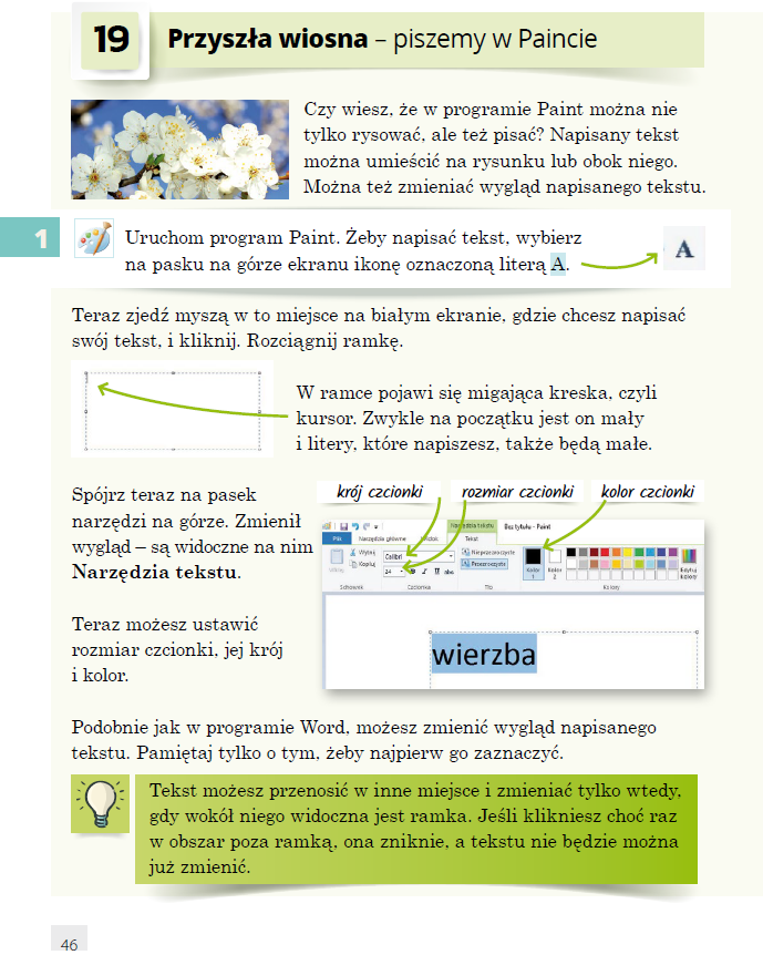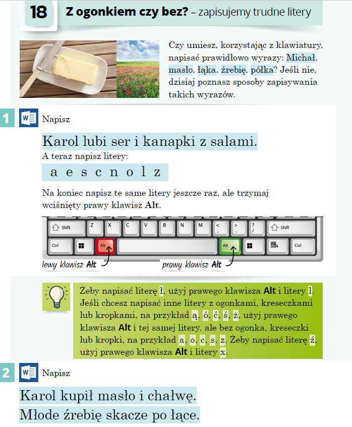 Praca z podręcznikiem, ćwiczenie na komputerze.