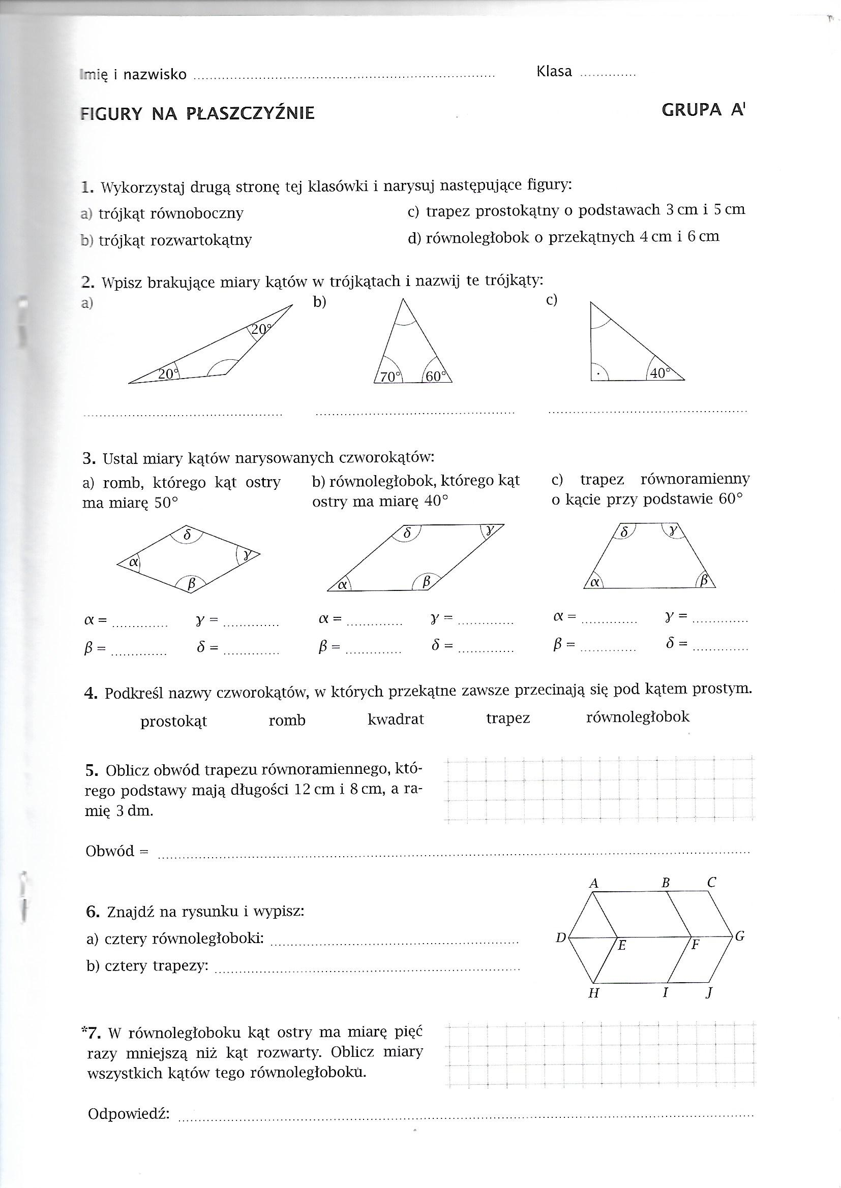 4. Przerysujcie i przepiszcie do zeszytu co to jest trapez równoramienny i trapez prostokątny.