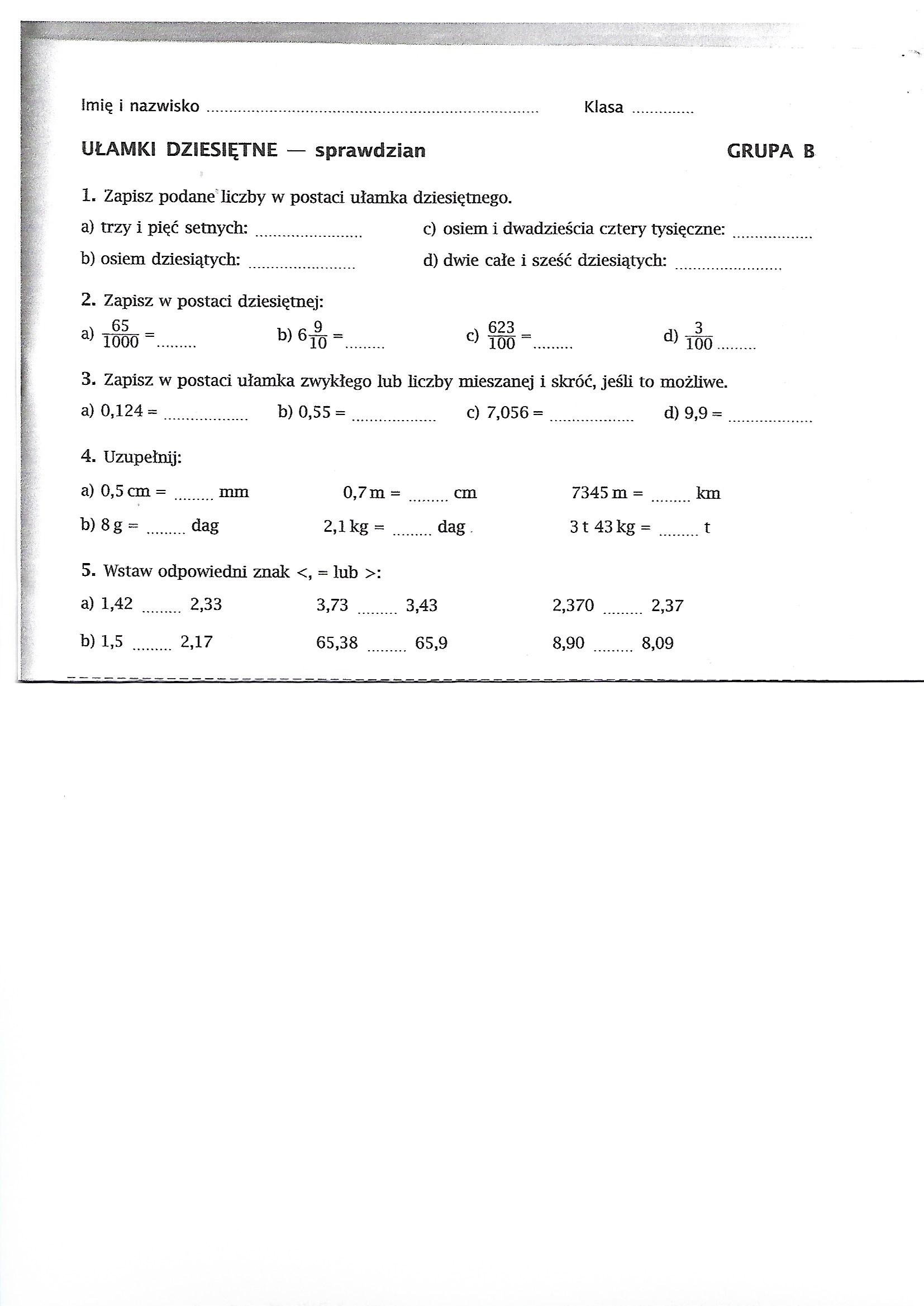 Temat: Ćwiczymy wykonywanie działań na ułamkach zwykłych i dziesiętnych.